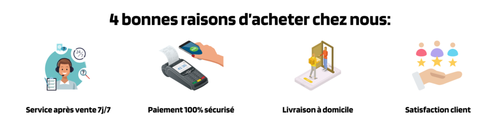 On vous livre en -24H et vous payer à la réception de votre colis.